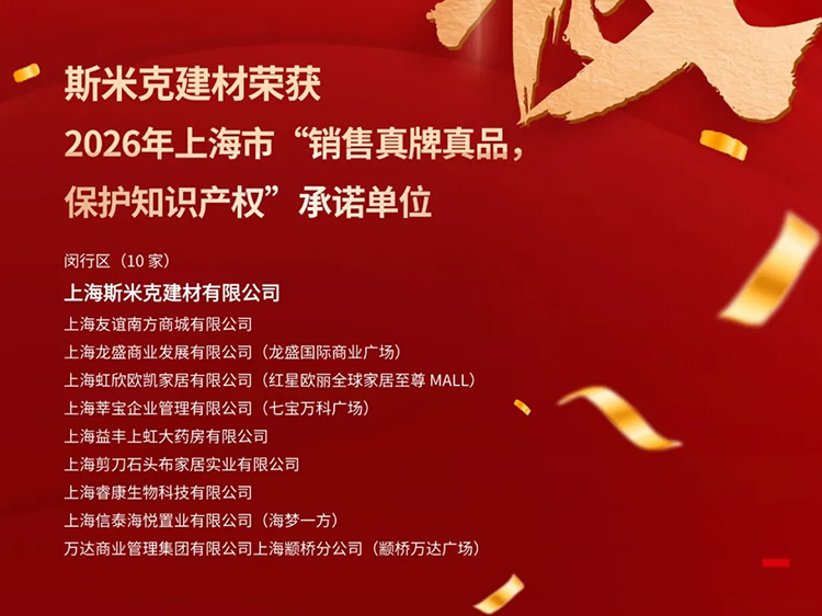 喜报 | 斯米克建材荣膺2026年上海市“销售真牌真品 保护知识产权”承诺单位