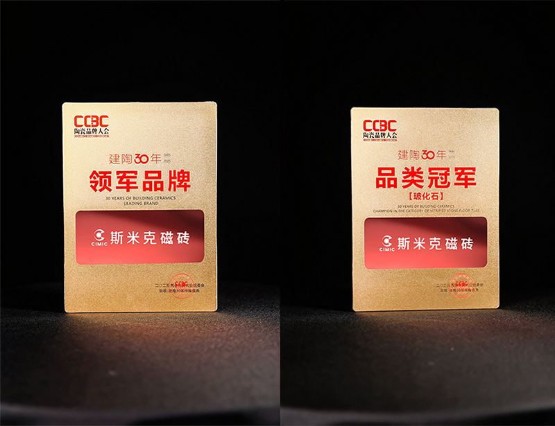 盛典现场,斯米克磁砖凭借深厚的品牌积淀与产品实力,一举斩获“建陶30年·领军品牌”及“建陶30年·品类冠军(玻化石)”两大重磅奖项,成为盛典焦点之一。此次斩获双奖,既是行业对斯米克磁砖在陶瓷领域长期深耕的高度认可,是实力的见证,更是前行的动力。
